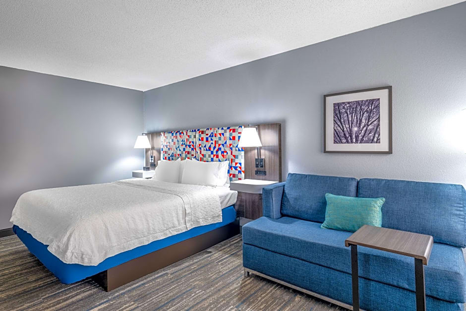 This mobility accessible, non-smoking room features one king-sized bed, and an accessible bath tub. The room features comfortable soft seating, microwave, refrigerator, a HDTV, and easy to operate alarm clock/radio. The room also has a visual alarm, and notification devices for the doorbell or door knock and incoming telephone calls. The free WiFi will help you stay connected while on the road. If you prefer not to work at the desk, you can use the convenient lapdesk instead. You'll also enjoy the convenience of having a coffeemaker with tea service and iron/ironing board in your room. Any corresponding photo may not reflect the specific accessible room type or room feature.
