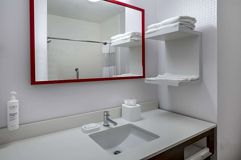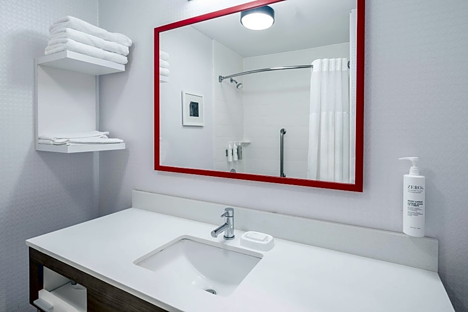 This mobility accessible, non-smoking room features one full-sized bed, and an accessible roll-in shower. The room features comfortable soft seating, microwave, refrigerator, a HDTV, and easy to operate alarm clock/radio. The room also has a visual alarm, and notification devices for the doorbell or door knock and incoming telephone calls. The free WiFi will help you stay connected while on the road. If you prefer not to work at the desk, you can use the convenient lapdesk instead. You'll also enjoy the convenience of having a coffeemaker with tea service and iron/ironing board in your room. Any corresponding photo may not reflect the specific accessible room type or room feature.